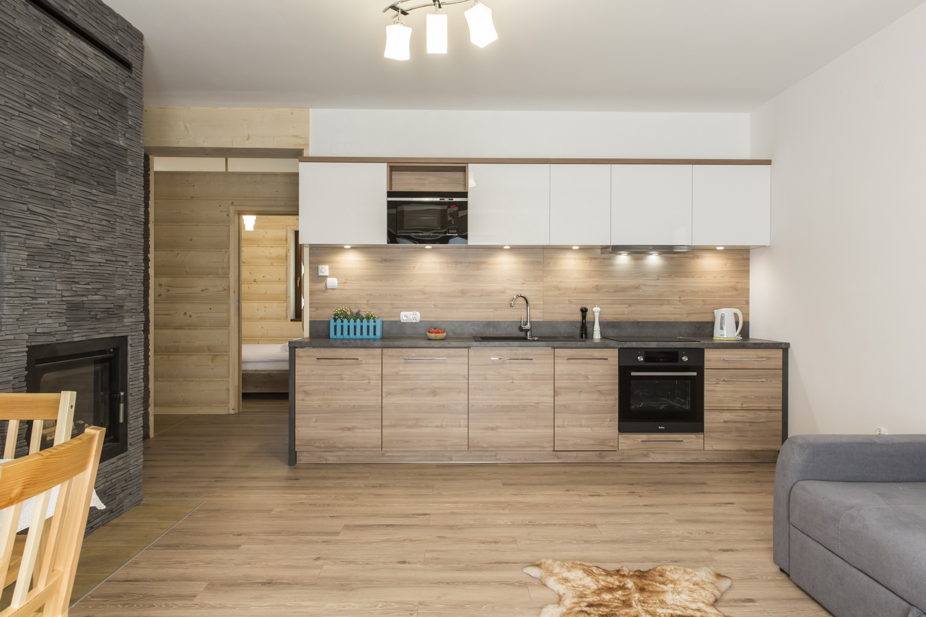 - w pełni wyposażonego aneksu kuchennego ze zmywarką do naczyń oraz części jadalnej